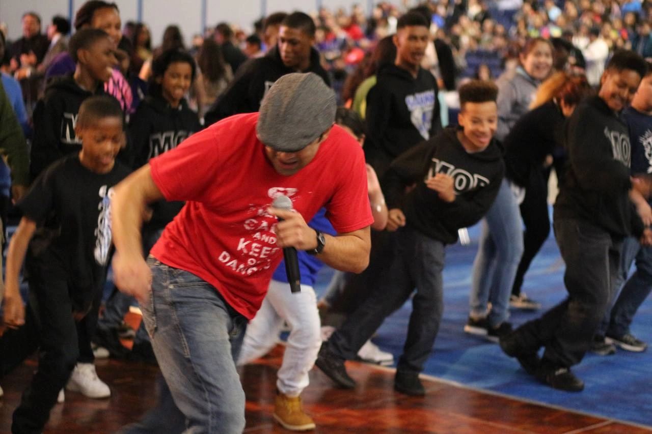 "His presentation blew away my expectation. I expected a cliched speech mixed with corny dancing,but it was entertaining and very relatable for not only the group of students that attended, but for myself,a college graduate. He accomplished the main goal which was to get the kids involved and